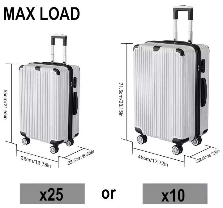 - Max large suitcases*: 30